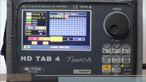 Miernik HD TAB 4 Touch oferuje zaawansowane funkcje do pomiaru DVB-S/52, DVBT/T2, DVB-C, dlatego sprawdzi się w każdej profesjonalnej instalacji RT V/SAT i CATY. Miernik HD TAB 4 Touch, w porównaniu z wersją podstawową HD TAB 4 Easy, wyróżnia się dotykowym ekranem LCD, pomiarem DVB-T/T2-LITE/C2, wykresem konstelacji dla DVB-T/T2, pomiarem sygnału wideo oraz podglądem obrazu w ANALOG TV. Przy dokładnym ustawieniu każdego satelity pomoże pomiar parametrów takich jak BER, MER, PER. Poszczególne funkcje miernika HD TAB 4 Touch prezentowane są na dotykowym kolorowym wyświetlaczu LCD 4,3”. Duże przyciski oraz funkcjonalne pokrętło do nawigacji umożliwiają przełączanie funkcji w rękawiczkach. Do miernika dołączony jest roboczy wodoodporny pokrowiec. Menu dostępne jest w języku polskim lub angielskim. Miernik HD TAB 4 Touch marki Rover ma funkcję przeskanowania wszystkich transponderów jednego satelity np. Astra – 19,2°E lub HotBird – 13,0°E i zapisania do pliku Excel parametrów (Power Level, MER, BER, BER) dla każdej częstotliwości. Funkcja ta jest bardzo przydatna przy sporządzaniu protokołu odbioru wykonanej instalacji. Miernik HD TAB 4 Touch pozwala dokonywać pomiarów: DVB-T/T2; DVB-S/S2; DVB-C; DOLBY Audio AC3-DD+; MPEG i ACC audio; obrazy MPEG4 HD; analog V/A; wideo; moc sygnału cyfrowego; pełne widmo SAT-TV-CABLE; MER; BER; PER; SCR; konstelacja DVB-T/T2, DVB-S/S2. Cechy miernika: